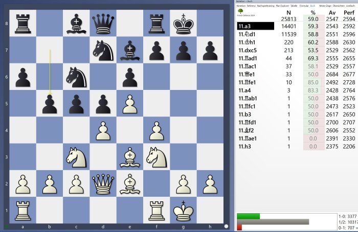 Las estadísticas del Powerbook para esta línea se basan en casi 24,000 partidas, mientras que la base de datos online solo reúne poco más de 1,000 partidas con esta variación.