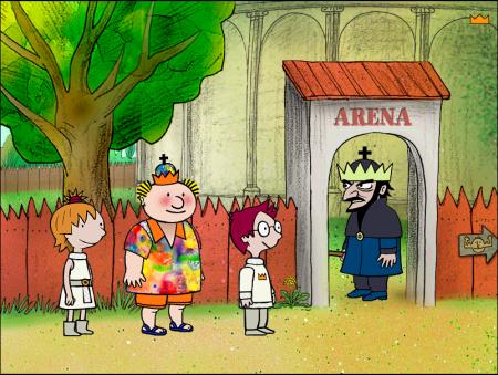 Durante su aventura, se une a ellos Kalaidoscope, un alegre instructor que les cuenta todo sobre el reino. En cada escena, los niños pueden hacer clic en diferentes elementos, como las trampas para ratones en la imagen, y ocurren situaciones divertidas que invitan a explorar el entorno.