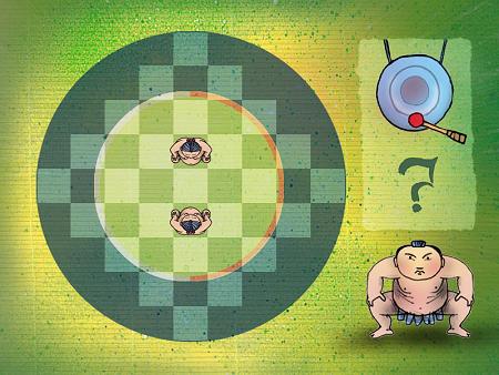 La primera lección ocurre al ver a dos luchadores de sumo enfrentándose en un ring. Estos luchadores son demasiado grandes para acercarse directamente, por lo que siempre mantienen al menos una casilla de distancia, moviéndose para bloquearse mutuamente.