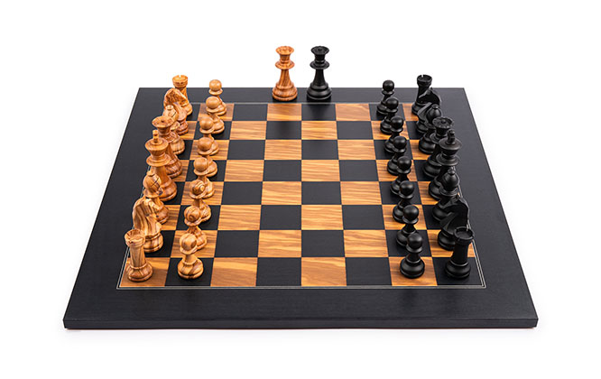 El tablero, de alto contraste, combina las maderas de wengué y sicomoro, y la superficie tiene un acabado mate. Las piezas, cuidadosamente torneadas y pesadas, garantizan una experiencia táctil única. VER MÁS