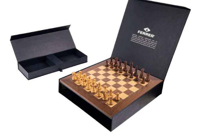 Los conjuntos de ajedrez Ferrer con estuche de lujo son una excelente opción para regalar a cualquier entusiasta del ajedrez, ya que otros conjuntos de madera no se presentan de esta forma tan impecable.