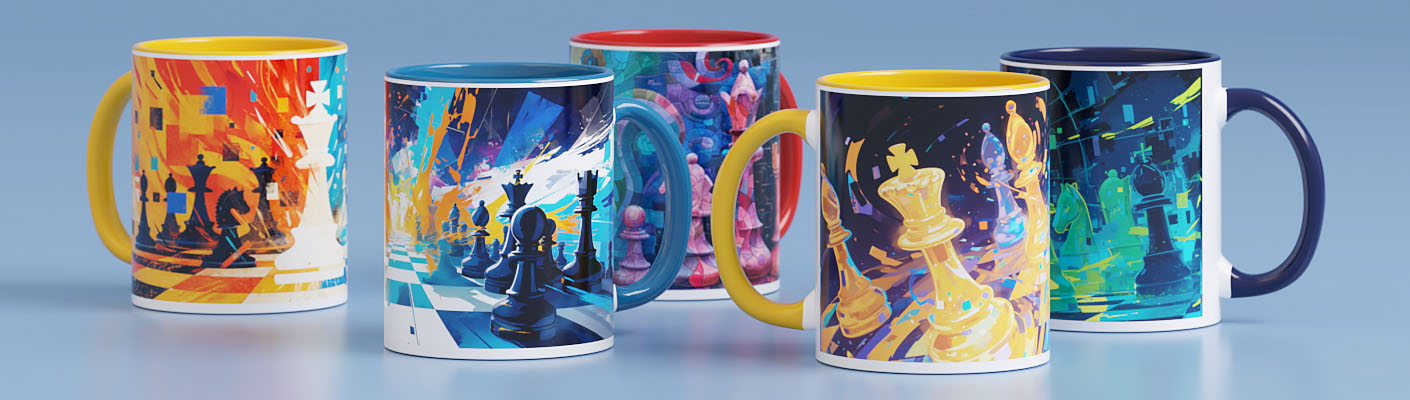 Llévate tu taza con bonitos y coloridos motivos de ajedrez. Para tomar tu café o té, o para decorar tu escritorio con alegres diseños de tu afición favorita. Y si regalas una de nuestras tazas a alguien que le guste el ajedrez, acertarás seguro.