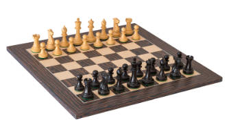 Este ajedrez es espectacular. Lo componen un fantástico tablero Ferrer Ébano Tigre Deluxe, de preciosas y marcadas vetas, y el juego de piezas Executive Staunton 6. Un set perfecto para jugar partidas tranquilas, analizar junto a un buen libro, o como objeto decorativo por su belleza y elegancia. Ojo, ajedrez grandote de 55x55 cm.